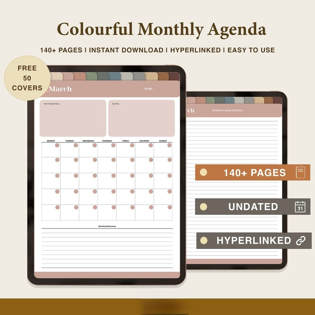 GoodNotes / Notability / Colourful Monthly Planner / PDF Digital Planner
